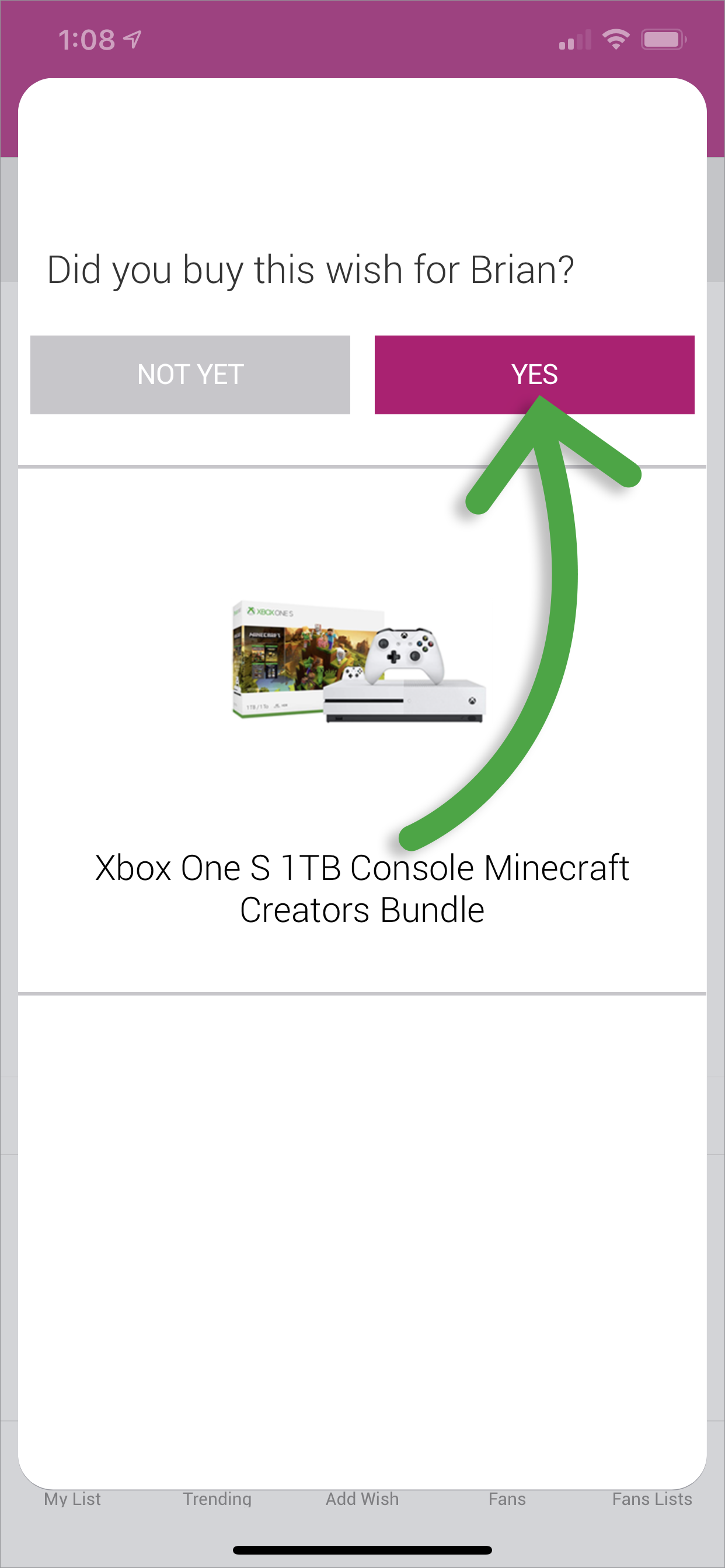 3. IMPORTANT! Be sure to come back to Wishfinity to indicate whether you bought the wish. If you don’t, someone else might buy the item too.